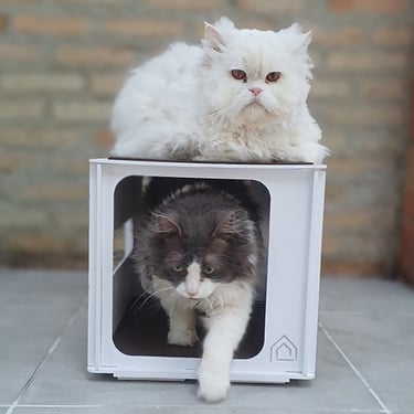 A SÉRIE MIAU TEM UMA VOLUMETRIA EXCLUSIVA PENSADA PARA COMBINAR COM QUALQUER AMBIENTE, POSSUINDO ABERTURAS PARA VENTILAÇÃO (QUE OS GATOS TAMBÉM PODEM USAR PARA BRINCAR), ARRANHADOR DE CARPETE NO "TELHADO", E.V.A. INTERNO PARA UM MELHOR CONFORTO DO ANIMAL E DESMONTÁVEL COM PEÇAS DE ENCAIXE QUE FACILITAM O ARMAZENAMENTO OU TRANSPORTE DO PRODUTO PARA QUALQUER LUGAR.